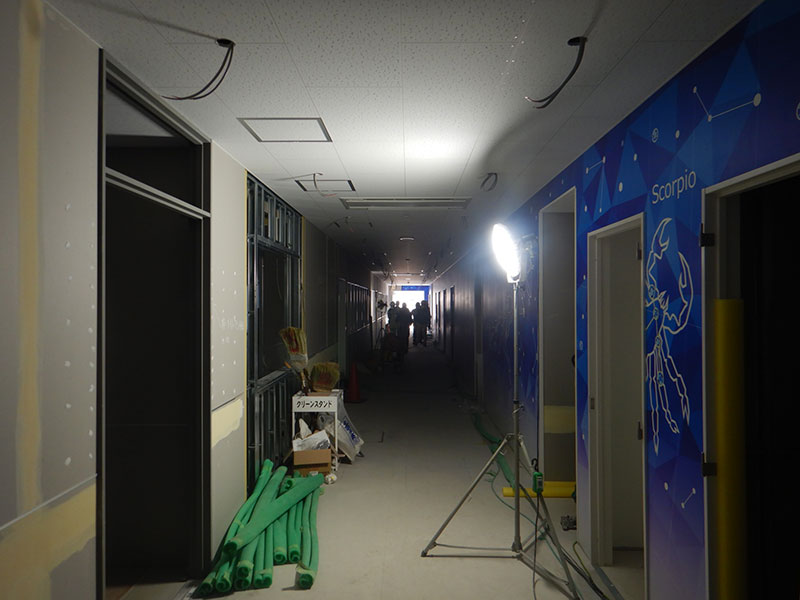 1階の廊下の壁紙が徐々に貼られてきました。