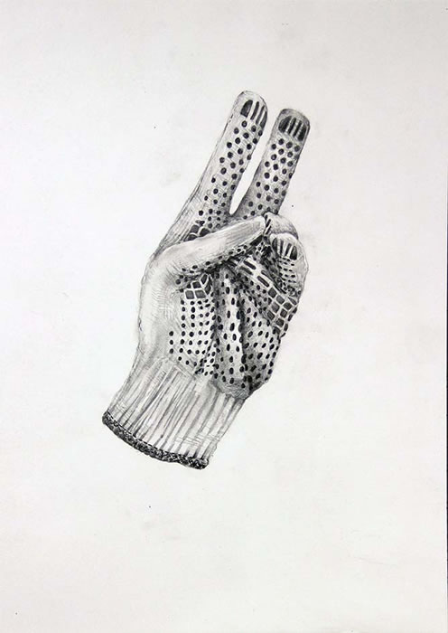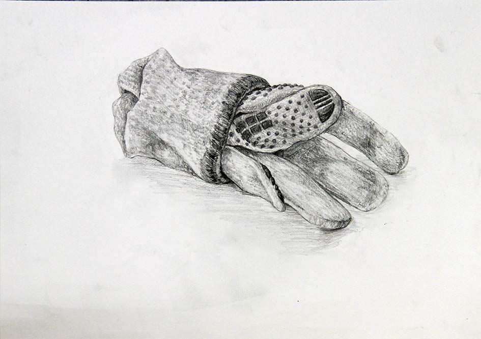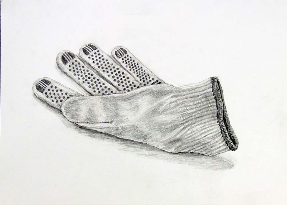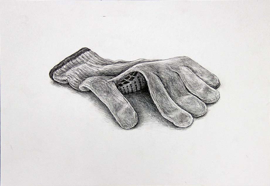 10月3日(土)に中間試験の中でデッサンコンクールを行いました。全学年共通モチーフで軍手の片手を配布し、自由に構成して描くというもので、画面の中でなら複数描いてもよい条件です。どの学年も構図を考えたり、軍手のゴムのある面を表現するのに苦戦していましたが、2時間半という限られた時間の中で精一杯仕上げていました。